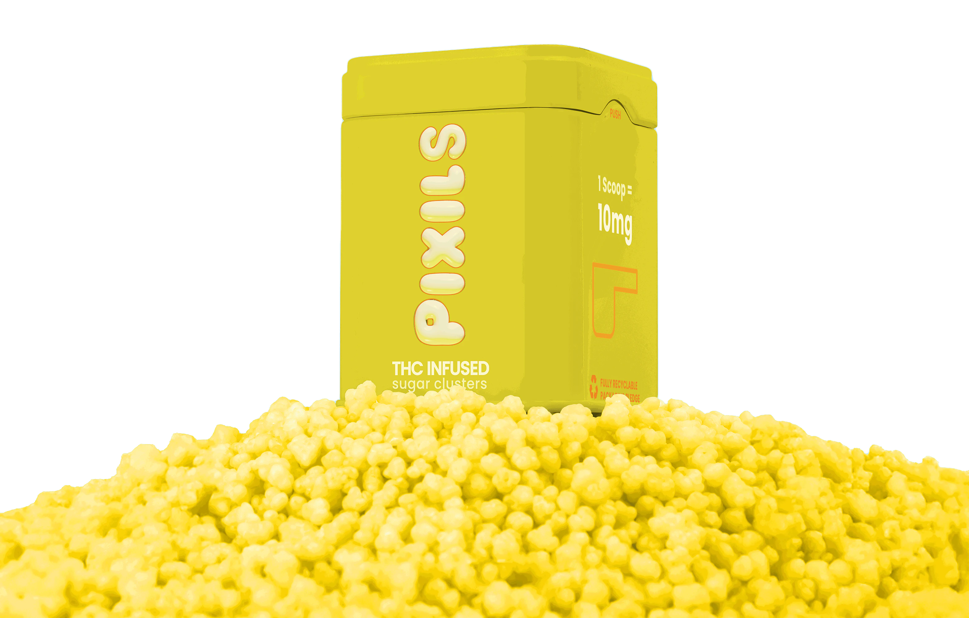 Meet Pixils—the infused sugar clusters that redefine the edible game. Packed with bold flavors, a perfect crunch, and all-natural coloring with no artificial dyes, each tin holds 200mg total and includes a 10mg scooper for easy dosing.