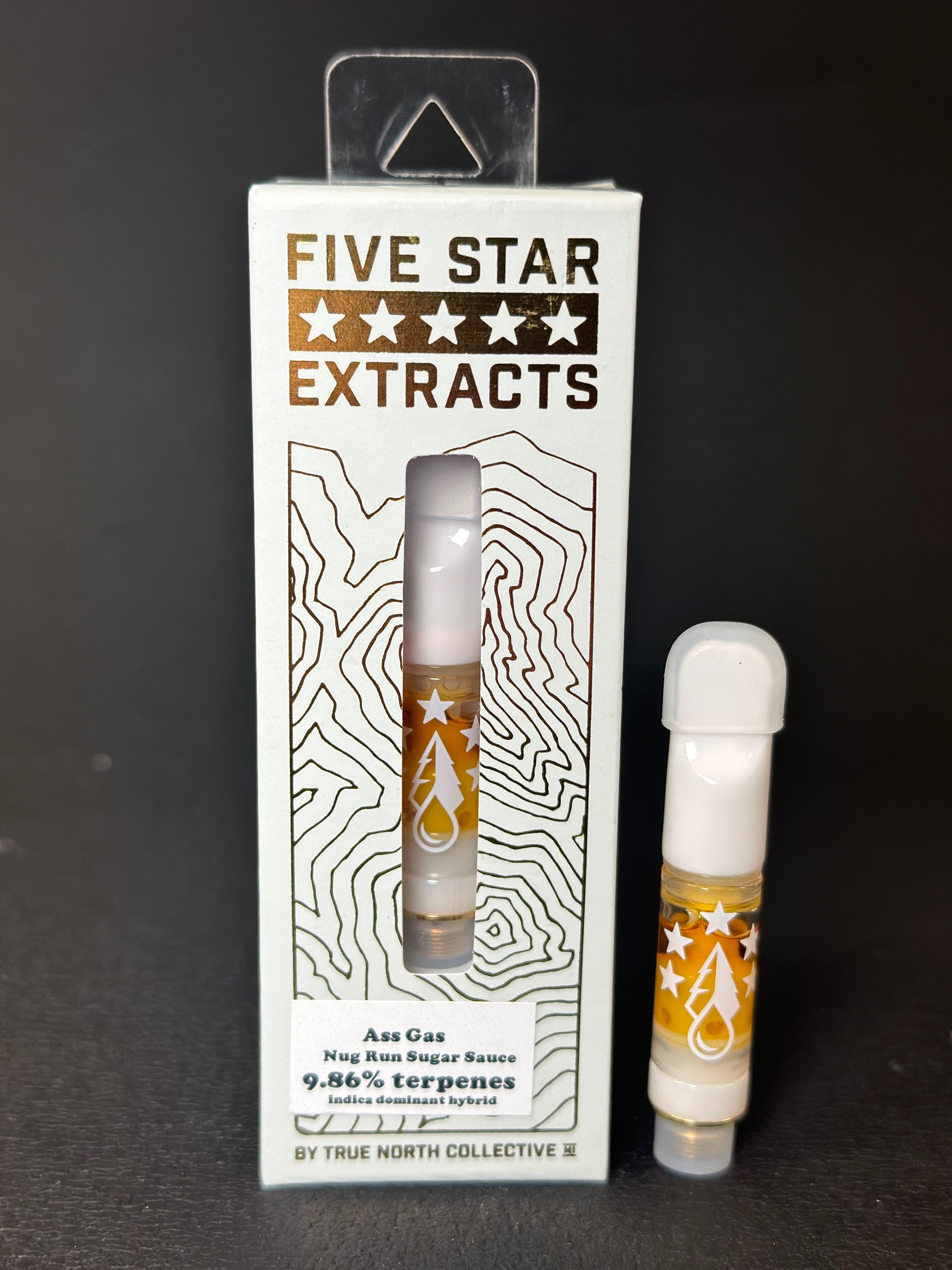 Experience the same amazing dabs from Five Star Extracts now available in a cart form. Made with the same process as our dabs, our Five Star Extracts Carts will use only premium buds and won't have any added distillate or artificial terpenes. The Five Star Extracts - Nug Run Sugar Sauce Carts will only contain the terpenes and flavonoids that are natural to our extraction process just like our current concentrates.