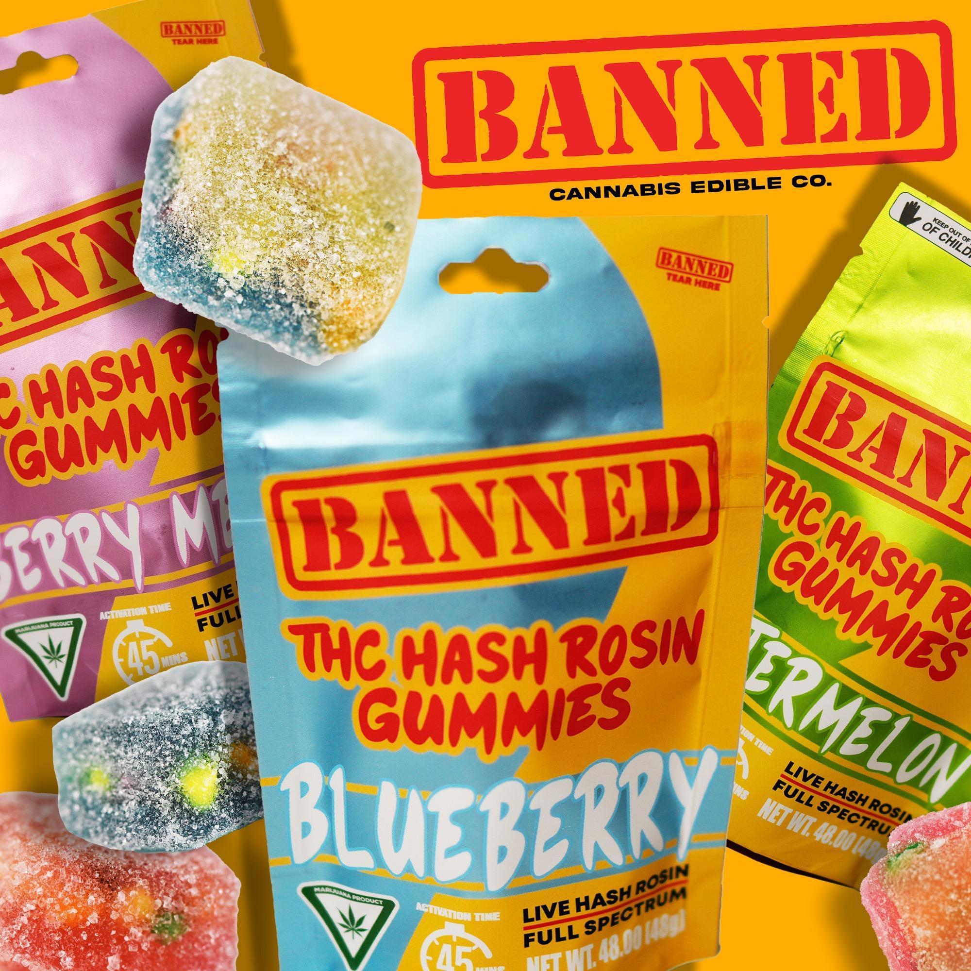 BANNED Full Spectrum THC-infused Hash Rosin gummy clusters, expertly crafted for potency and consistency. These gummies boast a smooth finish and a clean, cannabis-free taste. What sets them apart? An alluring nerds-filled center, a unique offering unmatched in the state. Ideal for value-conscious customers seeking to elevate their brand preferences and enhance their purchases. Experience the BANNED Effect today and order this delicious creation today from Banned Edible Co, a proud recipient of the High Times Cannabis Cup Award, and savor the unmatched quality of THC-infused hash rosin with every bite.