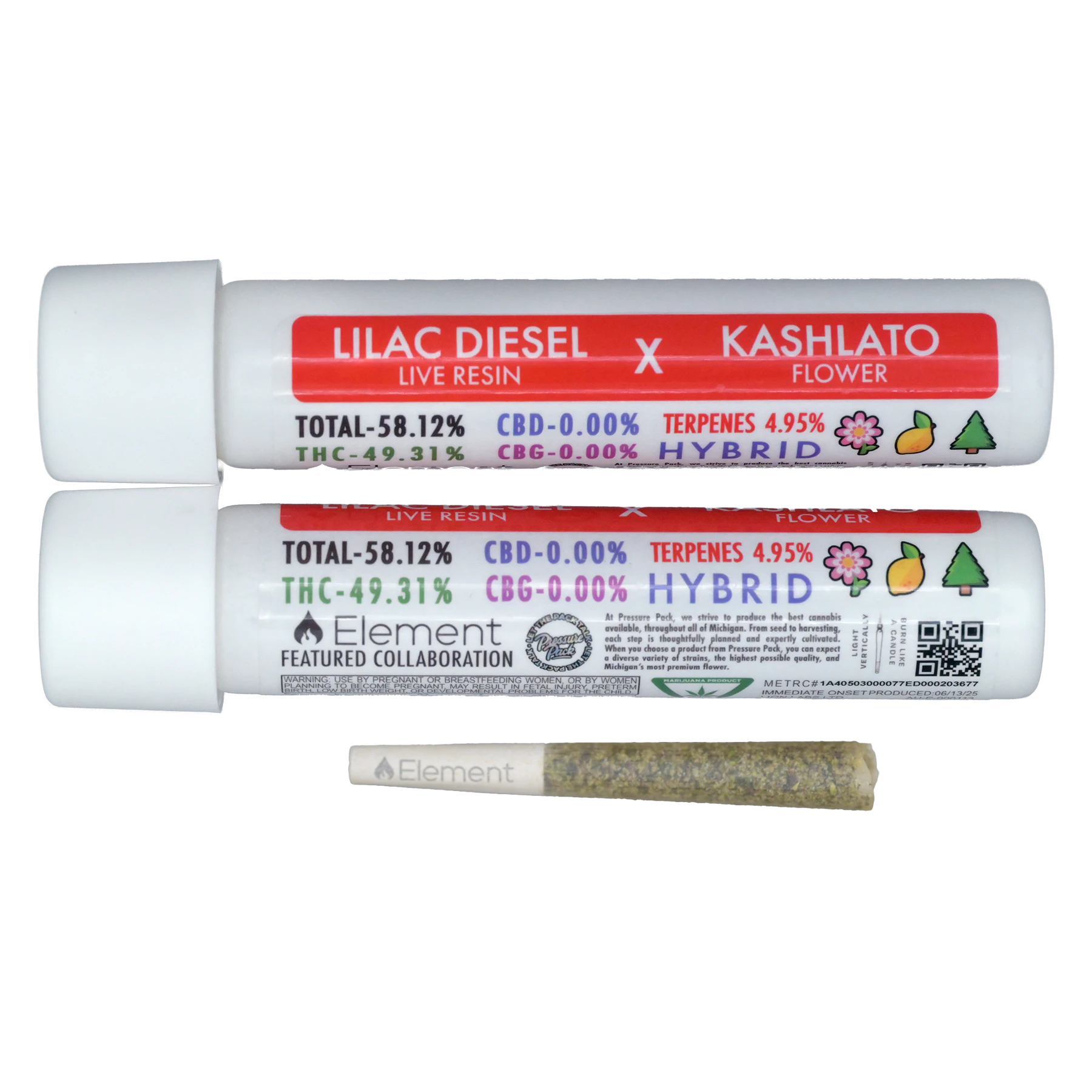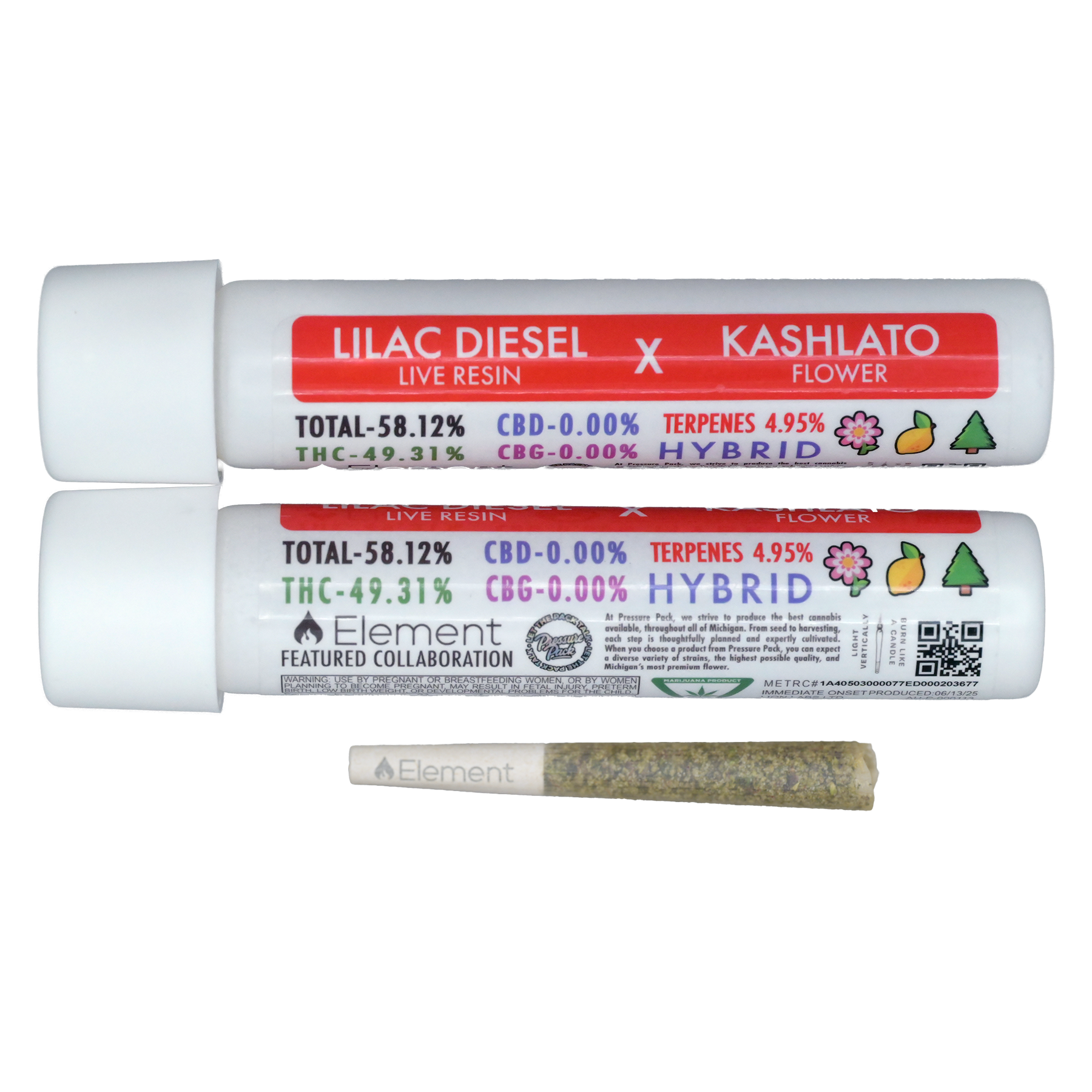 50% Element Live Resin, 50% top-shelf flower, the Element Live Resin Joint is certified 100% fire. This award-winning infused pre-roll adds the power of Element Live Resin to premium flower, resulting in a naturally terpene rich joint with THC percentages commonly 45% or above.