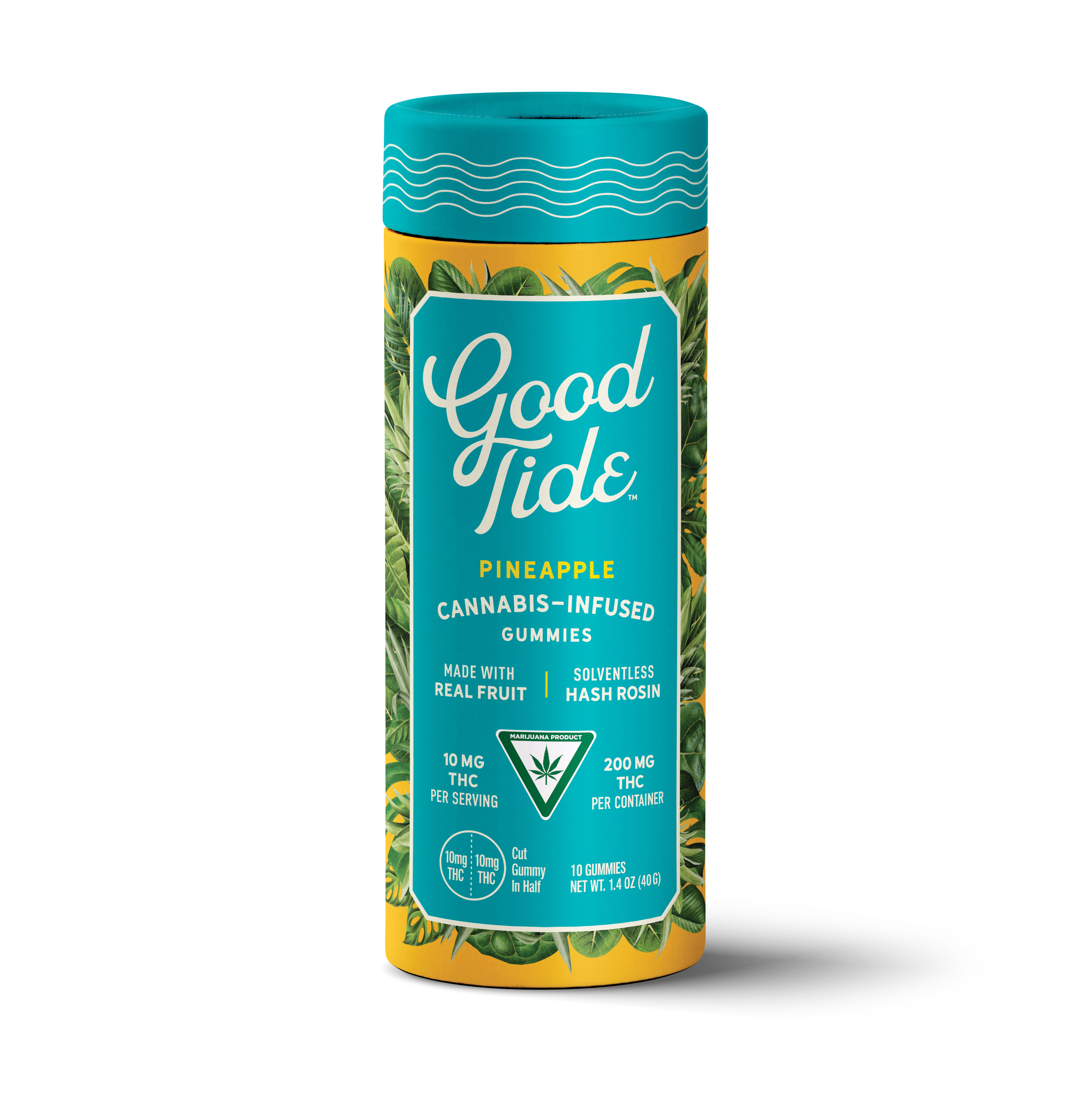 Feel the sand between your toes as you bite into a Good Tide pineapple hash rosin gummy.