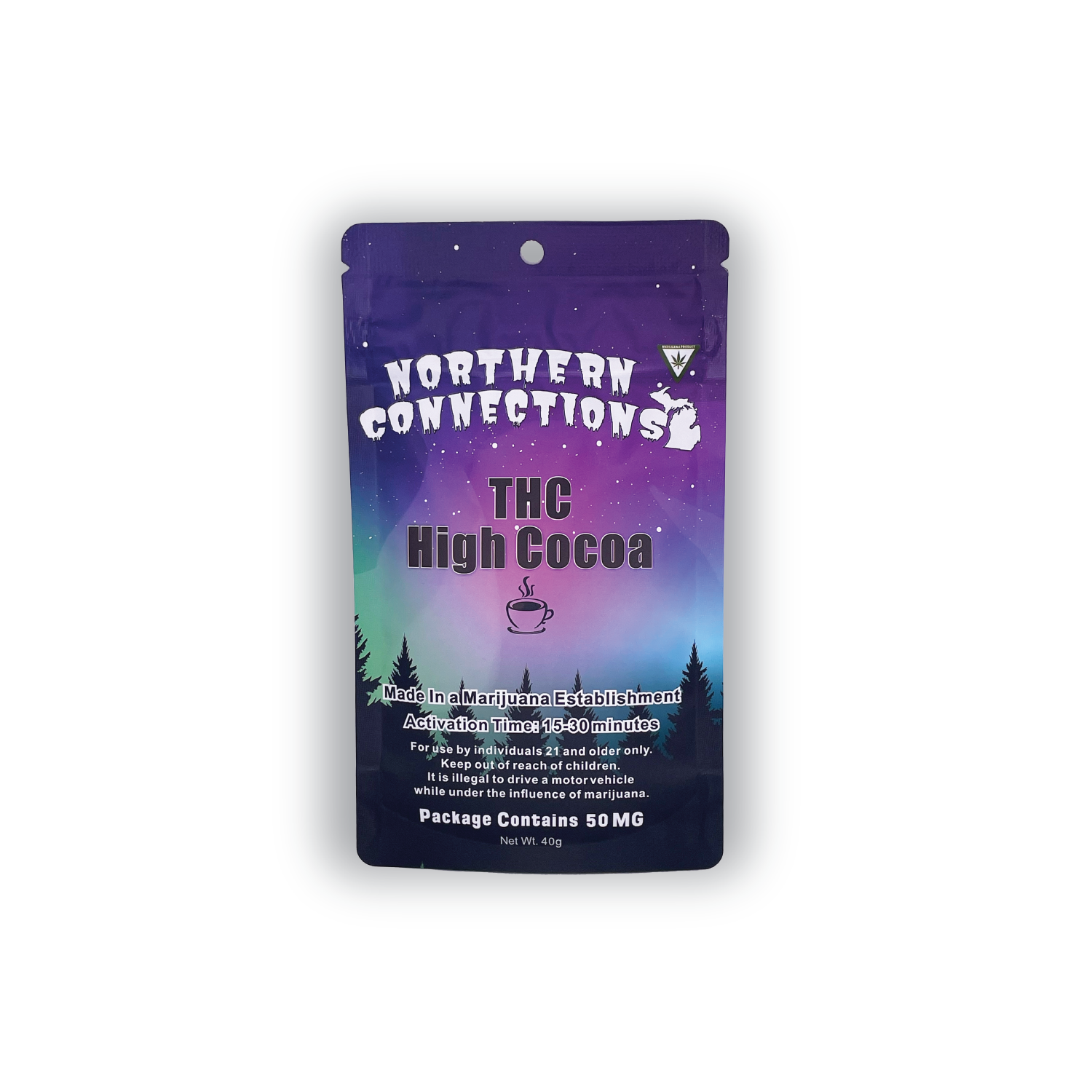 NEW* THC High Cocoa 50MG per pack. Directions: Place powder into your favorite mug. Add 8 floz of hot water or milk. Stir, Sip, and Enjoy. *Add toppings like marshmallows or whipped cream. Powder can be used in recipes; like brownies and cakes.